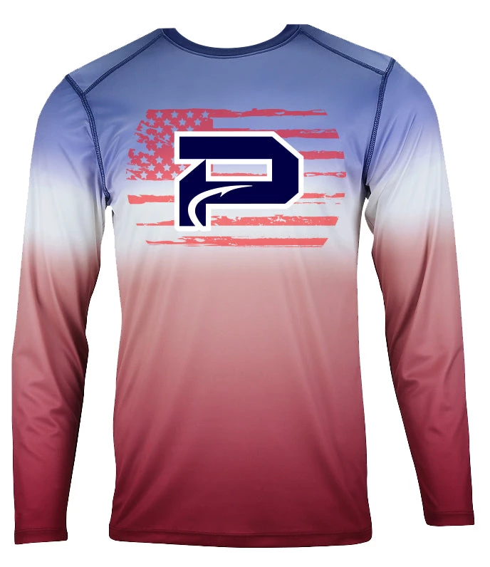 • Sublimated performance long sleeve performance shirt. This new shirt utilizes white as a transition between bright, vivid colors.