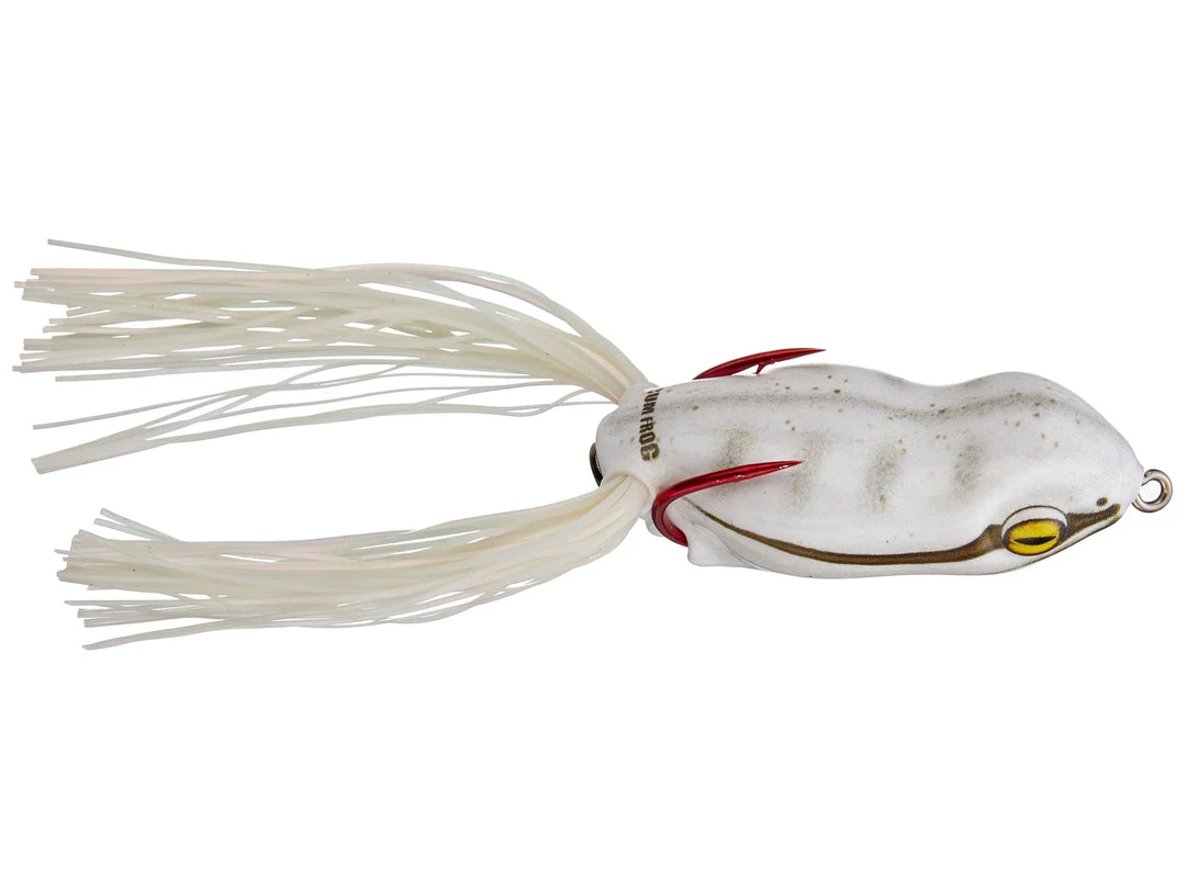 After hundreds of hours of on-the-water product testing and refinement, the Scum Frog Launch Frog is the new pinnacle of technical design and performance in topwater frogs. Featuring a proprietary tungsten “parasite” weight system with integrated locking tabs, which enable the weight of the Scum Frog Launch Frog to be attached securely on the shank of the hook to ensure proper weight distribution for longer casts and consistent performance. It is also built with a wide body and a brass button tail weight that allows it to sit in a nose up position to make walking the dog extremely easy.