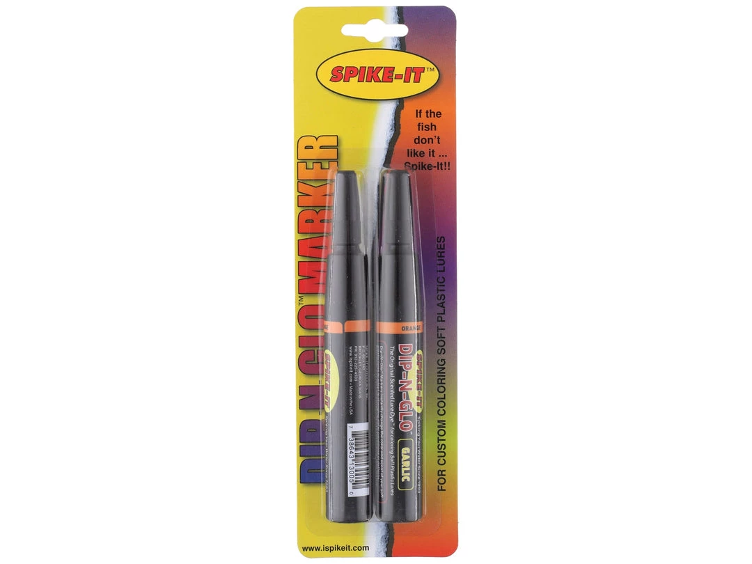 Now available in a two pack for anglers who are avid about making changes to their presentation, the Spike it Dip-N-Glo Markers 2pk are the perfect way to stay stocked up on your favorite marker colors and make sure you never run out. Very easy to use, the Spike it Dip-N-Glo Markers allow anglers to completely change the color of their soft plastics to match the hatch and create a totally customized look. The Spike it Dip-N-Glo Markers are scented as well, which adds another element to your bait and attracts fish by both sight and smell. Available in a wide selection of colors, the Spike it Dip-N-Glo Markers are great for anglers who are never satisfied with stock lures and always want something unique.